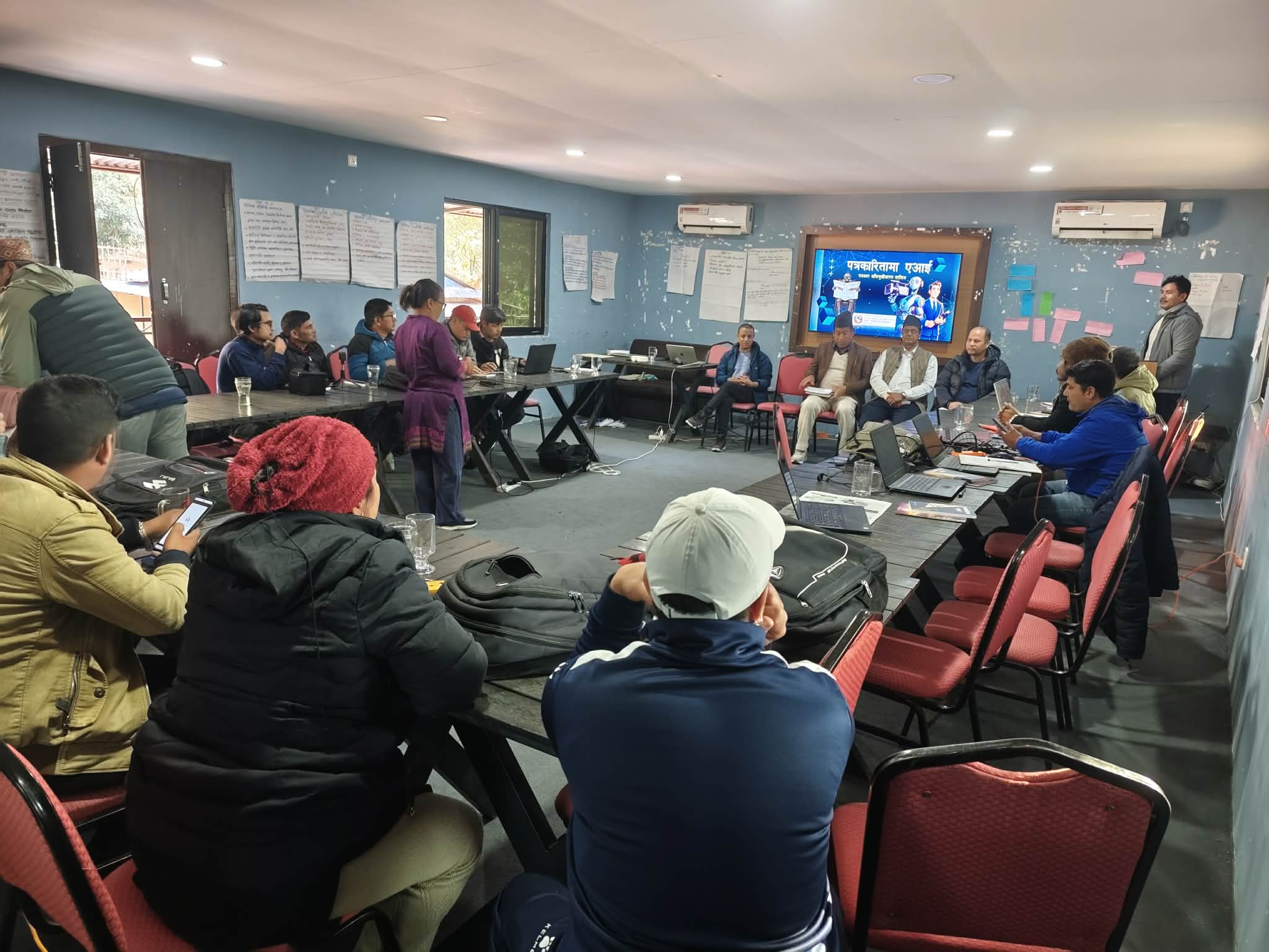 तालिममा एआईको आधारभूत अवधारणा, समाचार लेखनमा एआईको प्रयोग, तथ्य जाँच, तस्बिर तथा भिडियो सामग्री निर्माण, डिजिटल सुरक्षा र पत्रकारितामा एआई प्रयोग गर्दा अपनाउनुपर्ने नैतिक मापदण्डबारे प्रशिक्षकहरु अजय शर्मा र शिव पुरीले सहजीकरण गर्नुभएको थियो ।